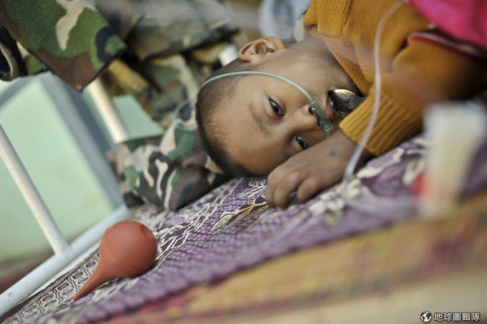 繼續閱讀醫院被震毀了,一名還接著管子的病患只能被移到戶外安置。圖片來源:Kaung Htet/Getty Images