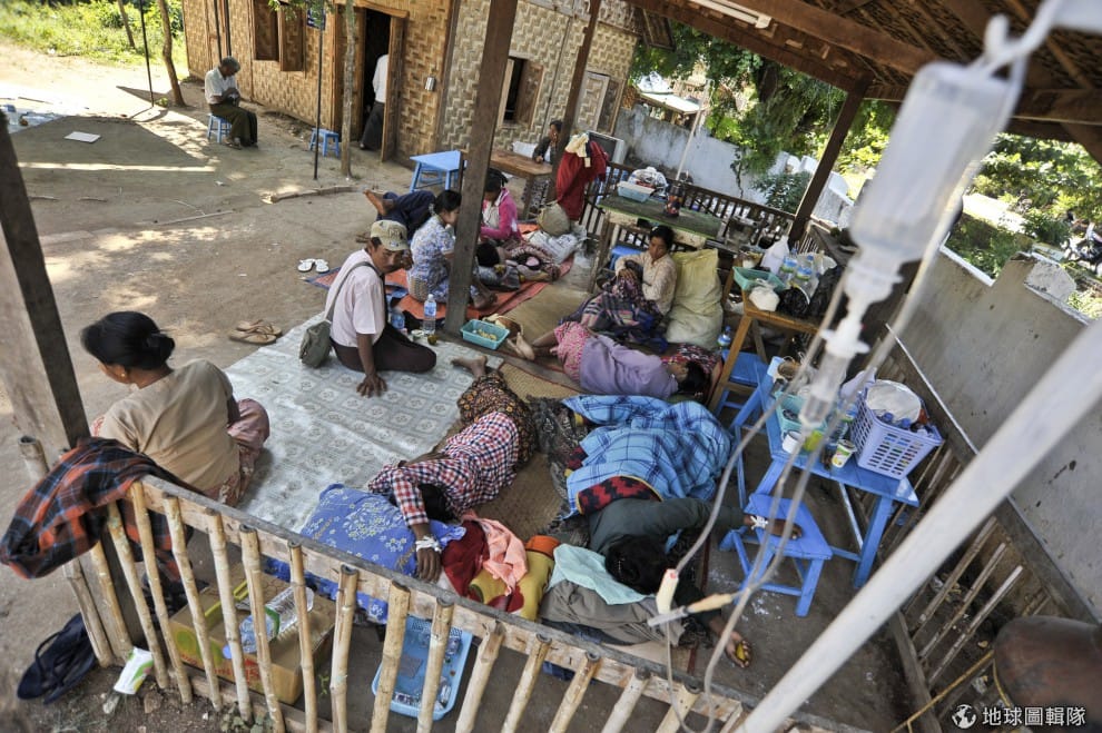 當地的醫院也逃不過地震的重創,無處可去的病患只能在臨時找到的屋舍下休息。圖片來源:Kaung Htet/Getty Images