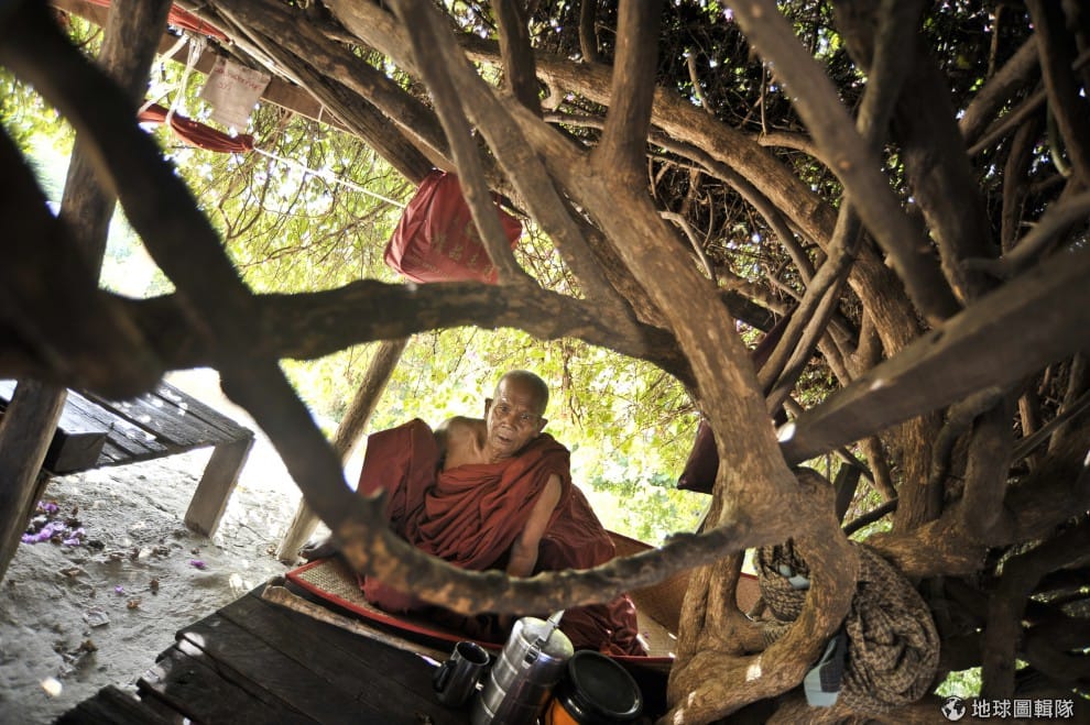沒了佛寺,和尚只能先在寺外的樹下休息。圖片來源:Kaung Htet/Getty Images