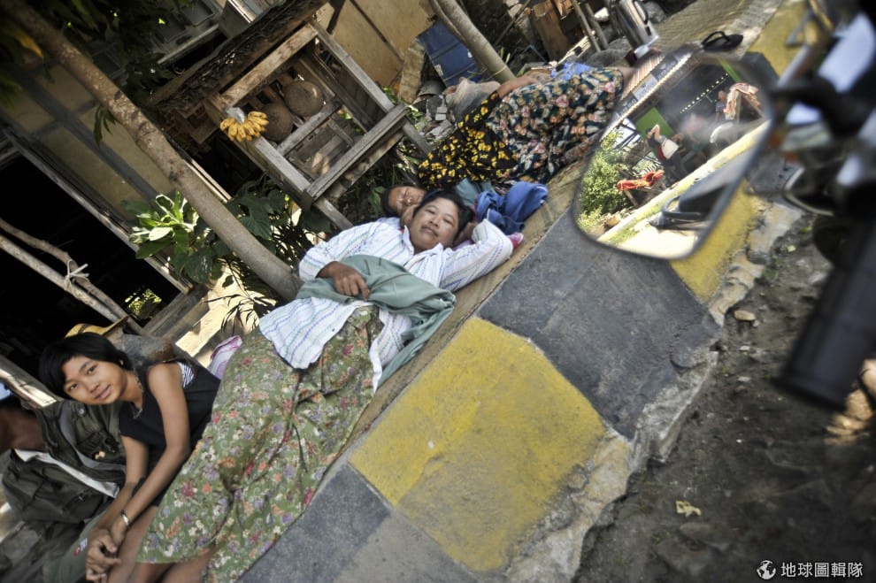 害怕又會有餘震來襲,一家人只能在馬路旁的人行道上席地而睡。圖片來源:Kaung Htet/Getty Images