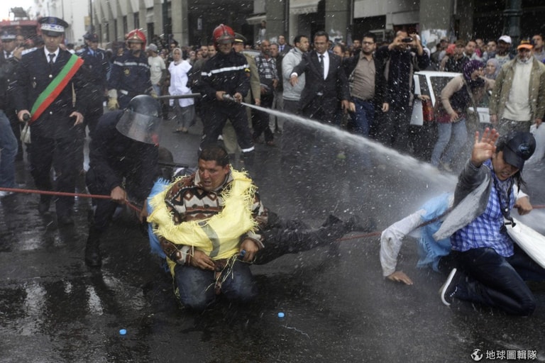 鎮暴警察拖行視障人士,這些民眾揚言要自焚表示不滿。26號時,摩洛哥首都拉巴特出現抗議民眾,這一群失業的畢業生不滿政府公部門停止雇用政策,在街上用繩索纏繞彼此的脖子,並把身上倒滿汽油。