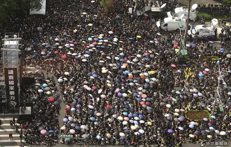 「救救民主,不要賣國」這樣的標語就出現在星期日的示威活動中。
