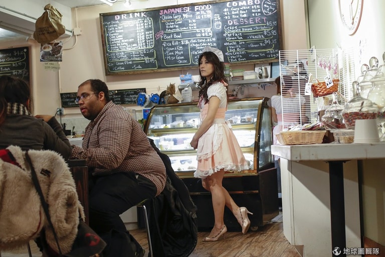 在亞洲地區已經不稀奇的女僕咖啡店,這股風潮也吹進紐約當地,這家Maid Cafe New York的店員換上女僕裝接待當地民眾。