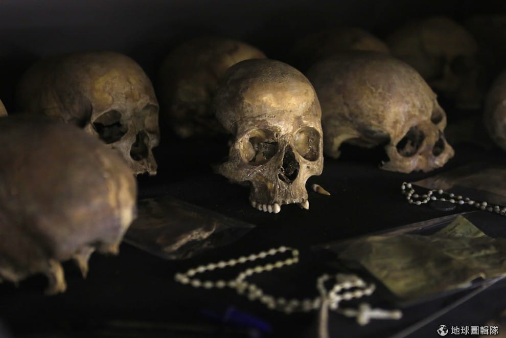 基加利大屠殺紀念館(Kigali Genocide Memorial Centre)中,可見罹難者的骸骨陳列其中。當地即將在7號開始一系列的悼念1994大屠殺的活動。