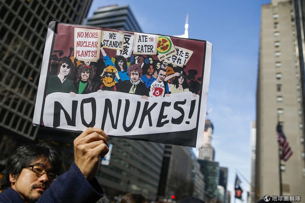 今年311大地震紀念日時,紐約街頭出現抗議核能的民眾