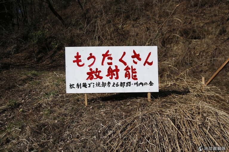 寫有「核能已經夠多了」的告示牌
