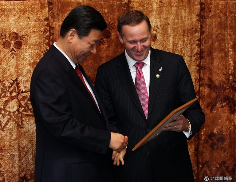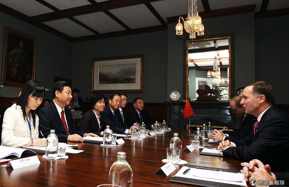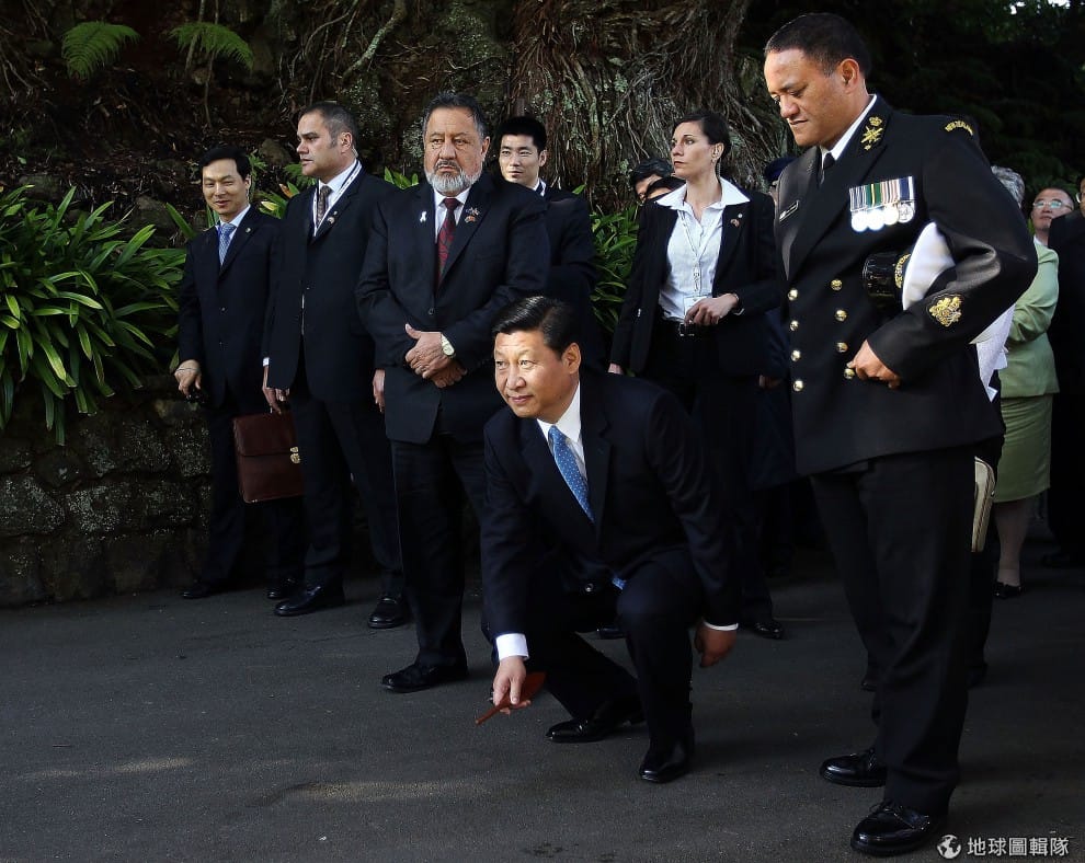 2008年簽屬自由貿易的協定後,習近平在2010年出訪到紐西蘭當地,想要加強中國大陸與紐西蘭間政治經濟的交流關係。圖片來源:Hannah Johnston/Getty Images