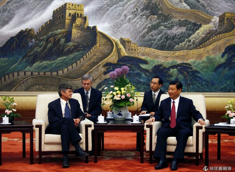 美國副國務卿詹姆士(James Steinber )與習近平在2009年的會議一景。圖片來源:Elizabeth Dalziel-Pool/Getty Images