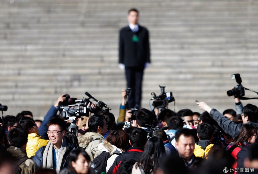 2013年3月5號,全國人大1次會議即將展開,由於這次面臨重要領導人大換血的時機點,全球媒體都在看。圖片來源:Lintao Zhang/Getty Images