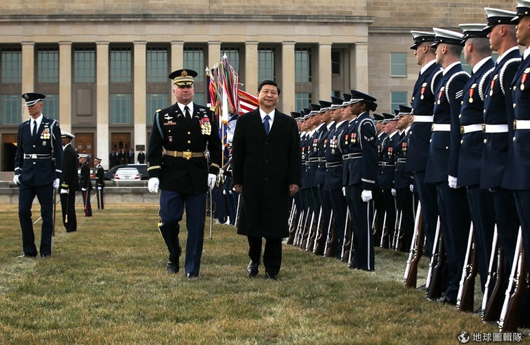 2月的出訪,習近平也參加了美國維吉尼亞州的閱兵典禮。圖片來源:Alex Wong/Getty Images