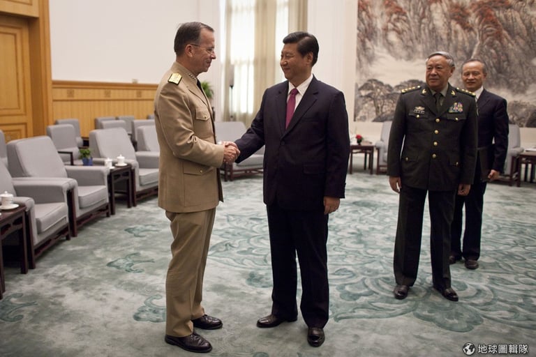 美國海軍上將麥可穆蘭(Mike Mullen)與習近平要討論南海的事宜,大陸在南海的領土上與菲律賓和越南一直存有爭議。圖片來源:Alexander F. Yuan-Pool/Getty Images