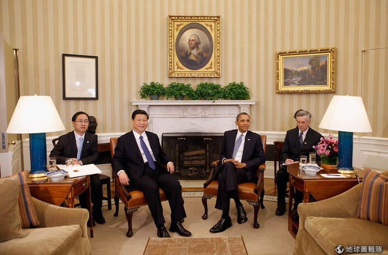 今年2月到美國的習近平,與美國總統歐巴馬要討論雙邊、多邊等等的全球議題。其實...照片中的姿勢可以看出一點彼此態度的端倪唷!圖片來源:Chip Somodevilla/Getty Images