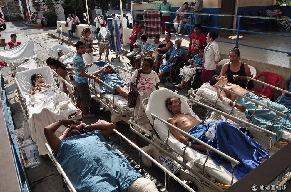 墨西哥南部的格雷羅州(Guerrero)在18號時傳出地震消息,芮氏規模7.2的地震讓民眾紛紛逃出家門,照片中是當地醫院的病患正接受他們的親友照料。