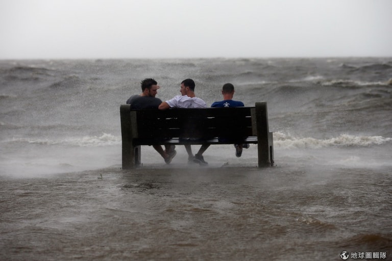美國紐奧良(New Orleans)仍遭受熱帶颶風艾薩克(Isaac)的威脅,當地氣象報導預計颶風會在28號登陸。圖中三名男子正坐在紐奧良的龐恰特雷恩湖(Lake Pontchartrain)畔。 圖片來源:2012/08/28;Chris Graythen/Getty Images