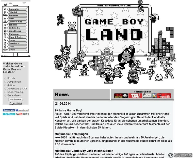 當然,世界上還是有許多玩家喜歡「來真的」,你可以在許多網站像是YouTube上發現玩家示範自己的破關密技,或是對Game Boy的某款遊戲津津樂道。例如在德語網站Gameboyland中,你會發現這走Game Boy畫面設計的網站特別受Game Boy玩家歡迎,站內的呈現會讓他們回味無窮,例如線條簡單的虛擬人物或是經典遊戲的背景音樂等。