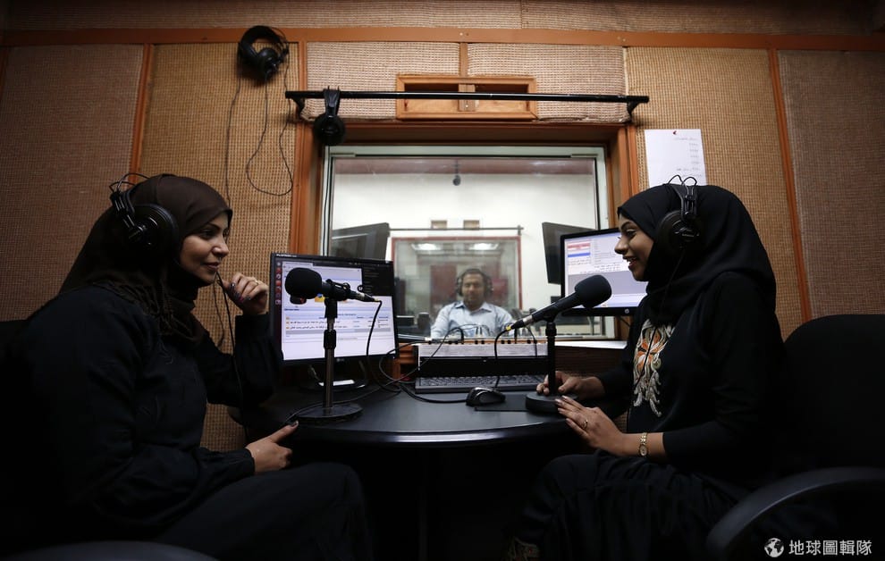 照片中是葉門當地的私營廣播電台,可見兩名廣播員正在播報節目中。自從2011年推翻執政長達34年的前總統沙雷(Ali Abdullah Saleh)後,葉門就開始出現許多無執照的地下電台,葉門的資訊局長就表示當地需要盡快規範這些電台。