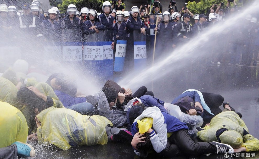 台灣警方用水柱朝示威群眾噴灑,試圖將他們驅散。台灣在26號開始出現反核靜坐人潮,其中在忠孝西路一帶就傳出警民衝突的消息,這次大規模抗議的民眾除了表達核電歸零的訴求外,也要支持正在絕食抗議核四建案的民進黨前主席林義雄。27號時,台灣政府回應核四廠的一號機將會在安檢後封存,二號機則會立即停工。