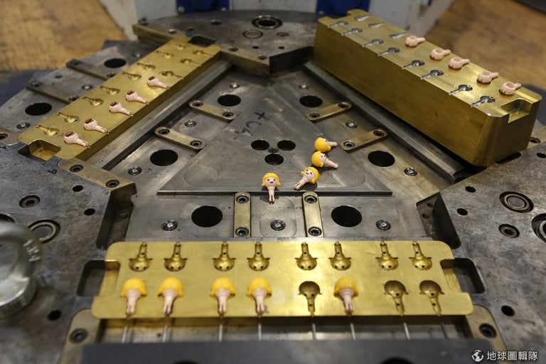 一個個躺在工廠模具裡的摩比人零件。