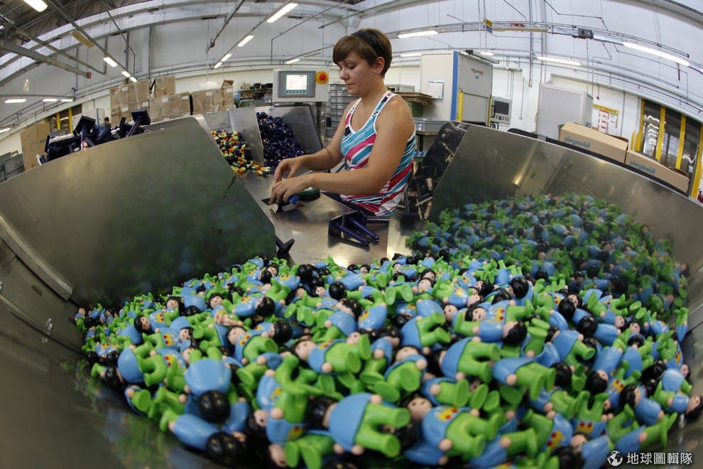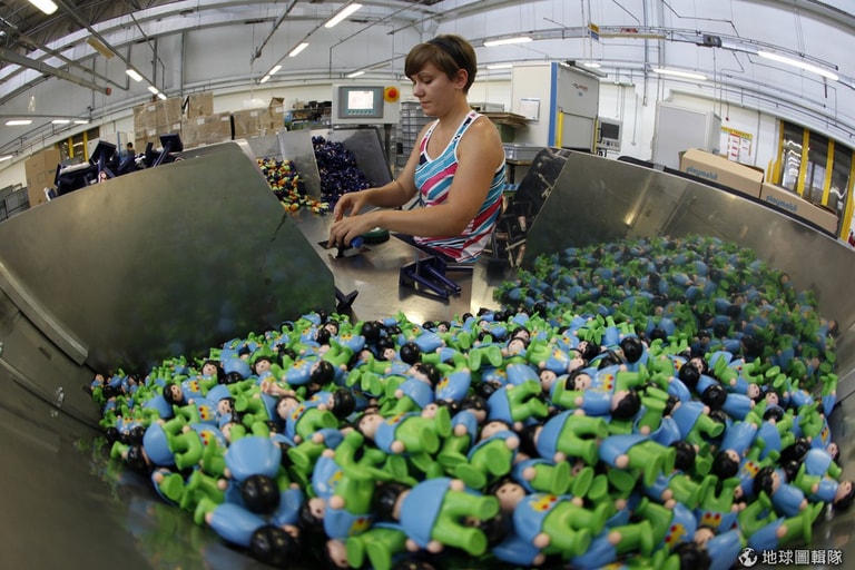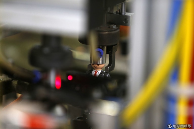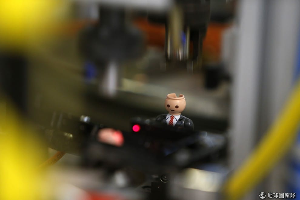 工廠的機器會自動把零件組合在一起,平均每分鐘可以生產出192個摩比人。