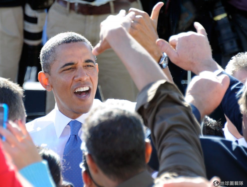 gettyimages歐巴馬跟支持者表達同心一氣的時候,也要舉起一樣的手勢!圖片來源:Ethan Miller/Getty Images