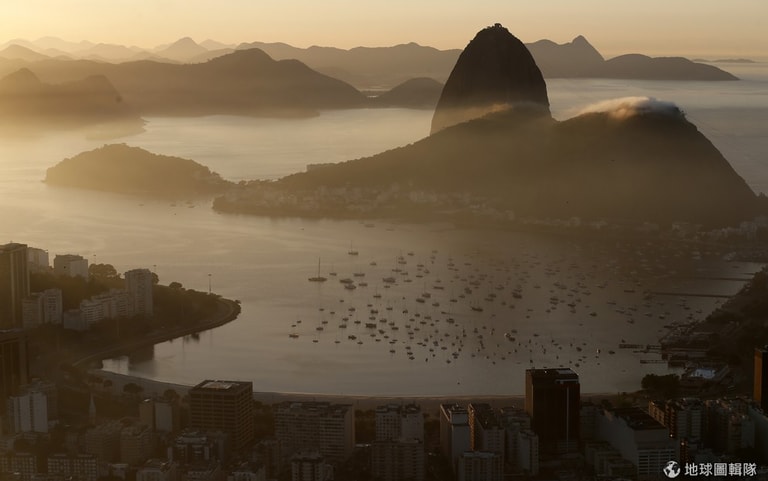 即將在6月舉辦世界杯足球賽的里約熱內盧,當地的「糖麵包山」(Sugar Loaf mountain)在日出時和周遭景致形成一幅美景。