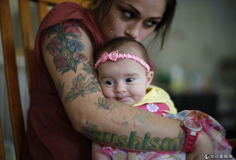 24歲的凡妮莎(Vanessa Moreno)親親她懷中的2個月大女兒