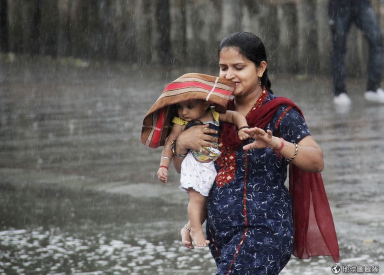 總是等到我們要先吃飽、穿暖、睡好,確保我們安全無虞後媽媽才會安心,照片中是印度去年6月時,當時數個月的大雨讓街道全淹起大水,一名女性把寶寶抱在懷裡,還用包包遮住她的頭。
