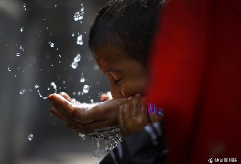 小時候,媽媽的手好像是無所不在的保護傘,我們熱了、累了,媽媽的手就會出現幫我們抹掉滿頭汗,再給我們一個依靠。尼泊爾的小男生正在慶典中就著媽媽的手喝水。