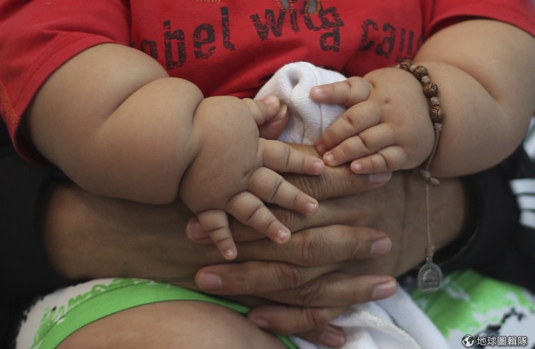 當我們還不會走路時,媽媽幾乎是無時不刻把我們抱在懷裡,沒有我們之前的媽媽可能是個弱不禁風的女生,但一生下我們後就像是大力士。照片中的曼多薩(Santiago Mendoza)才8個月大就已經有20公斤了,他的媽媽要帶他上減重班。