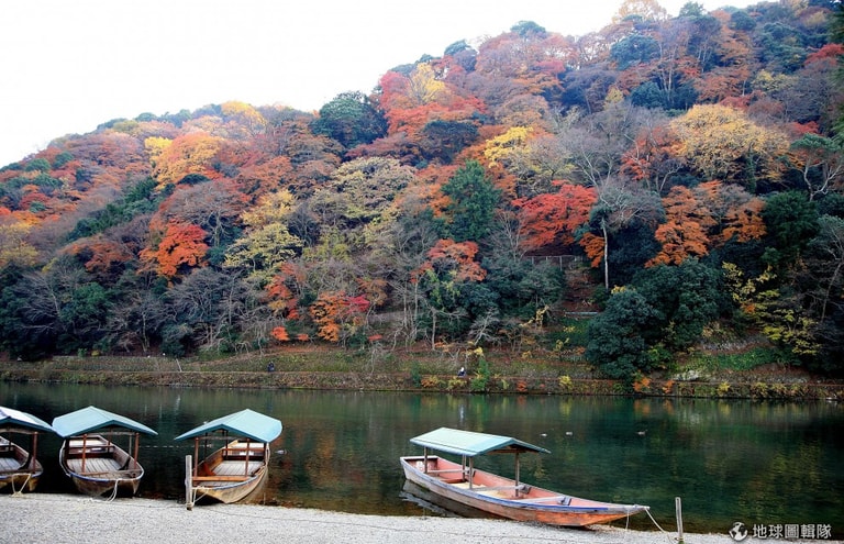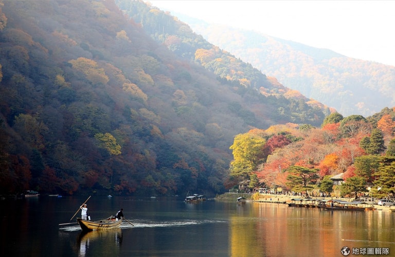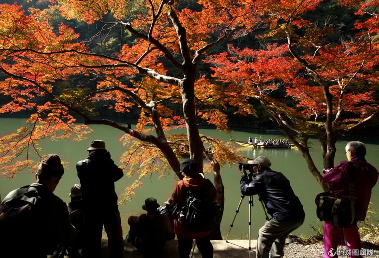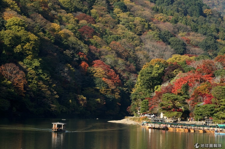 乘著渡船在桂川上緩緩而下,在這種氣氛下人應該都會忍不住附庸風雅起來吧?圖片來源:Buddhika Weerasinghe/Getty Images