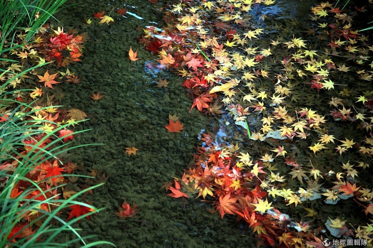 時間都走到了11月,但京都嵐山的楓紅還沒有到極大值,仍是可以看到許多努力「轉型」的綠黃色樹葉。圖片來源:Junko Kimura/Getty Images