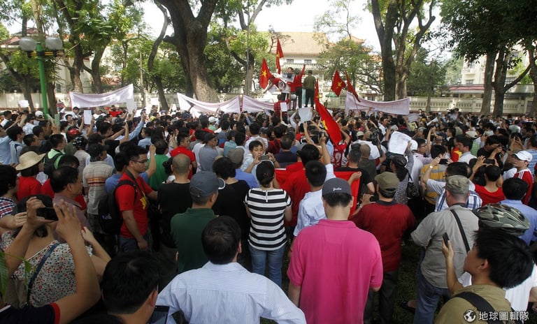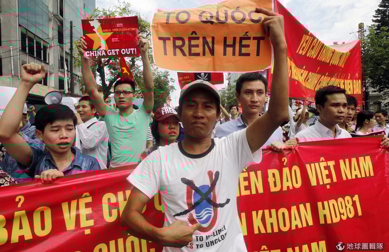 日前11號時,越南首都河內(Hanoi)開始出現數百名示威群眾,他們手拿標語,邊唱愛國歌曲、邊走向中國駐越南大使館,引起他們抗議情緒的,是因為中國日前把一座鑽井平台移入越南聲稱擁有主權的水域中,兩國隨即引發衝突,越南方面就表示他們的船隻受到攻擊,報告顯示雙方在對峙期間互相以水柱攻擊。中越兩國的衝突消息傳出後,讓南中國海緊張情勢升高。