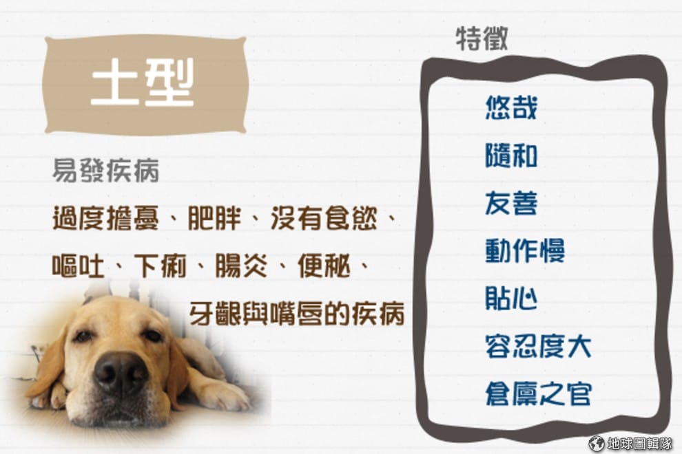 謝旻莉這次就要教導民眾如何辨別寵物的中醫五行體質,首先要談中醫,就要先知道陰陽、五行的基本知識。有了基本知識後,謝旻莉介紹了木火土金水各類型的狗狗特徵,極易發的疾病。