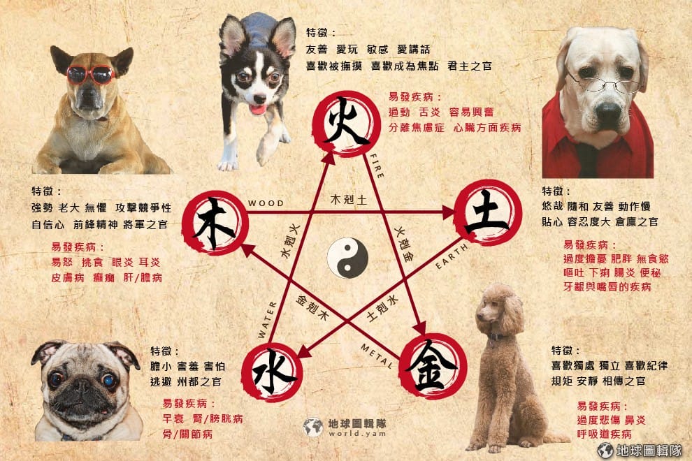 謝旻莉也強調,五行分類不是代表寵物完全歸屬某一行,而應該要五行平衡每個都具備,只是多寡之別。「所以我常常建議大家養4隻狗,都養不同類型的,連自己這一行,剛好五行平衡!」謝旻莉打趣地說道。