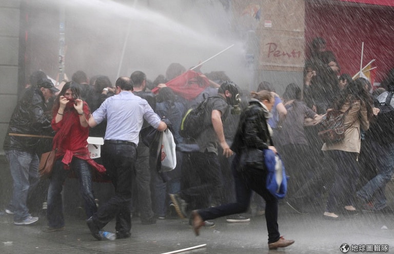 面對示威群眾,警察則是發射催淚瓦斯和水槍驅散他們。