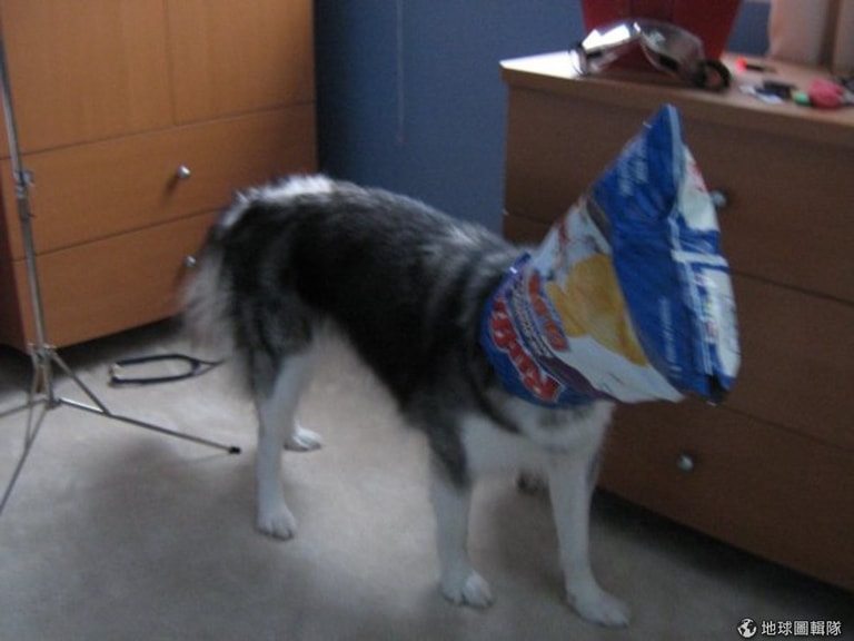 淘淘有時候真的太淘氣(這也是牠的名字來由),比如說圖中牠正在搶吃主人的食物。不過在這張照片引來許多擔憂的聲音後,牠的主人回應說他們平常不會把這樣的塑膠袋隨意亂丟。