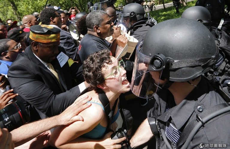 美國伊利諾州出現警民衝突,要求提高薪資的民眾聚集到奧克布魯克(Oak Brook)當地的麥當勞總部大樓前。