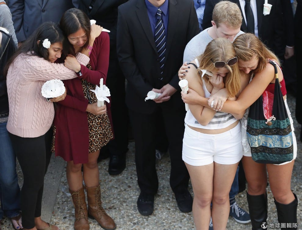 聖塔芭芭拉加利福尼亞大學(UC Santa Barbara)的學生們抱在一起悼念逝世的同學。當地在24號時,傳出有人開車持槍朝校園內亂槍掃射,這名兇手年僅22歲,他在攻擊完學校後也隨即飲彈自殺,這場事件造成了共7人死亡。