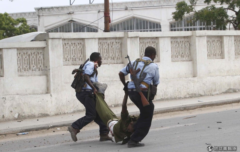 索馬利亞的軍人們正緊急拉著夥伴往外撤離,他們和當地的青年黨(Al shabaab)武裝組織發生衝突,報導中就談到,與蓋達組織有關連的青年黨坦承犯案,他們在24號時用炸彈和槍枝攻擊國會大廈,釀成至少4人死亡。