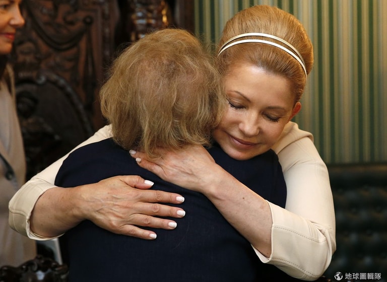 照片中是烏克蘭前「美女總理」季莫申科,她和美國外交官歐布萊特(Madeleine Albright)相見歡。