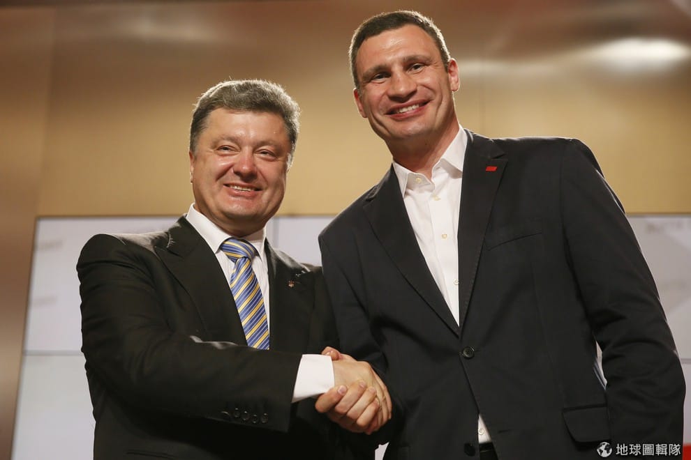掌管全球第18大糖果工廠的企業巨擘波洛申科(Petro Poroshenko,圖左),他在過半數的支持率中先行宣布當選烏克蘭新任總統。另方面,烏克蘭首都基輔市市長則是由前拳王克里契科當選。
