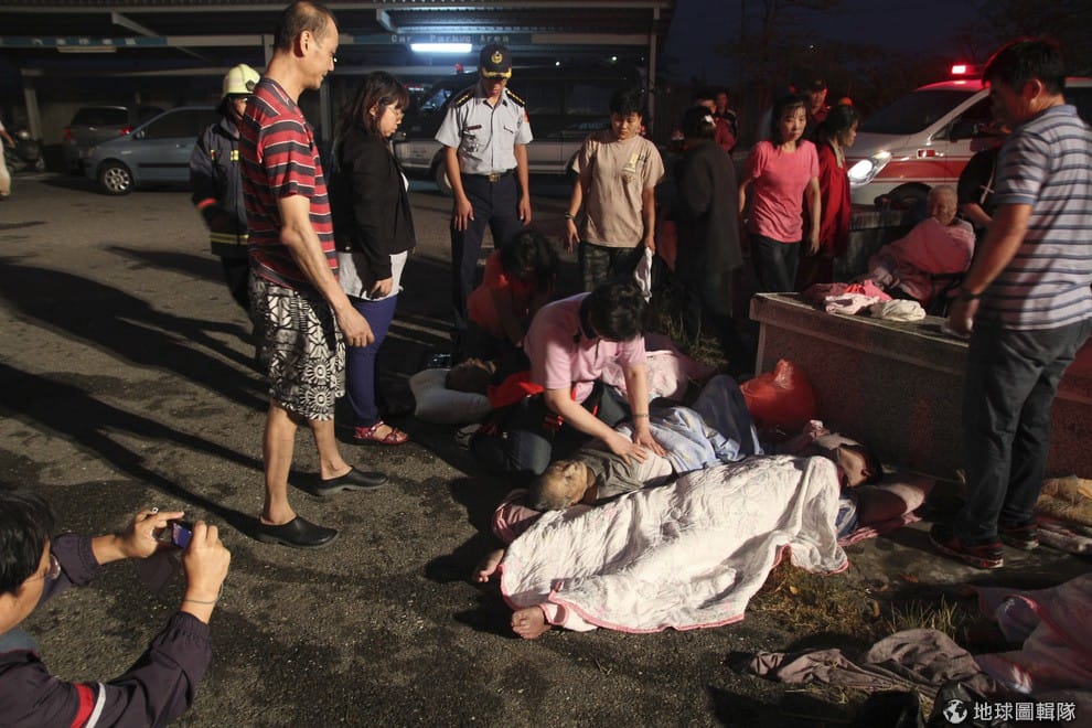 事發當晚,救護人員只能先將老人家抬到室外進行安置。