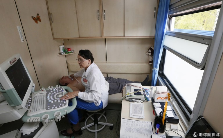 俄國幅員廣大,許多地區的民眾缺少診所醫院等醫療資源,於是在7年前開始,有了這樣一輛醫生列車服務他們。
