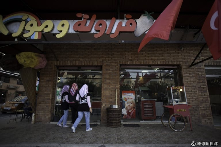 正要走進當地冰淇淋店的女孩們!對他們來說,重要的麵粉、優格等食物常常缺乏,這不只讓家庭飲食有問題,連商家也沒生意做了!圖片來源:Eman Mohammed/Getty Images