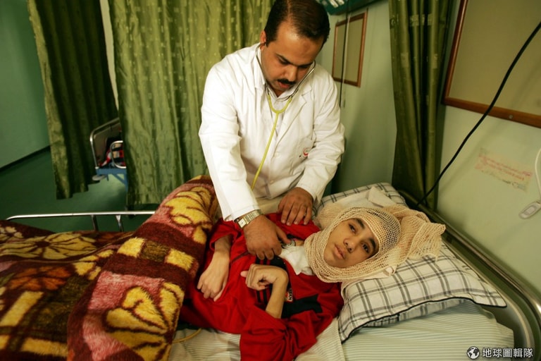 物資缺乏也出現在醫院治療設備上,這邊只有基本的設備,許多器具亟待更新!照片中的巴勒斯坦人因為失去親友,難過得不停掉淚......。圖片來源: Abid Katib/Getty Images