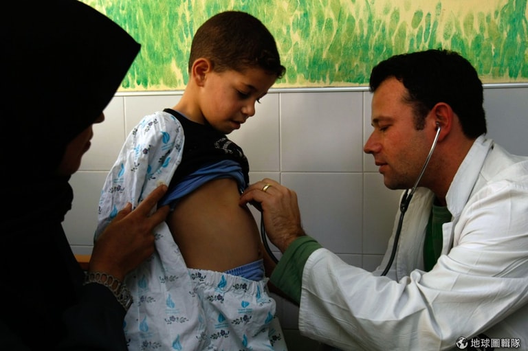 當地的小男生接受醫生的健康檢查!圖片來源:David Silverman/Getty Images