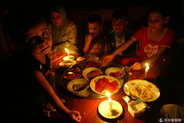 無時不刻都在停電,這是我們沒辦法想像的生活啊!照片中的居民要守著燭光用餐。圖片來源: Abid Katib/Getty Images