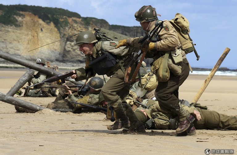 歷史迷全換上第二次世界大戰的裝扮,並重演當年諾曼地戰役中士兵們奮勇登陸的場面。6月6日這天,是諾曼地戰役滿70年的日子。