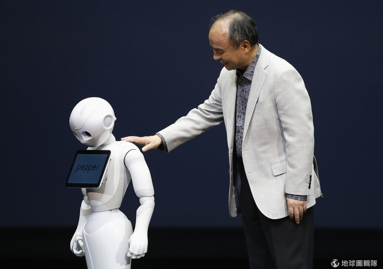 日本軟銀公司(Softbank)的創辦人兼社長孫正義向大家介紹他們的新產品, 一個可以讀懂情感的機器人「胡椒」(Pepper)。