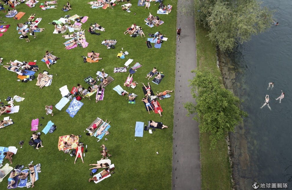 民眾齊聚到阿勒河畔(Aare River)游泳和做日光浴,享受當地的夏天時光。